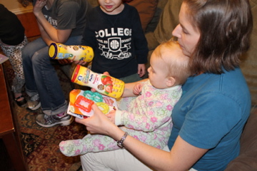 Grandma took us shopping for some Paigey birthday presents one morning and got little light up toys for the older two. Here is Cole with Iron Man's spinny light head: